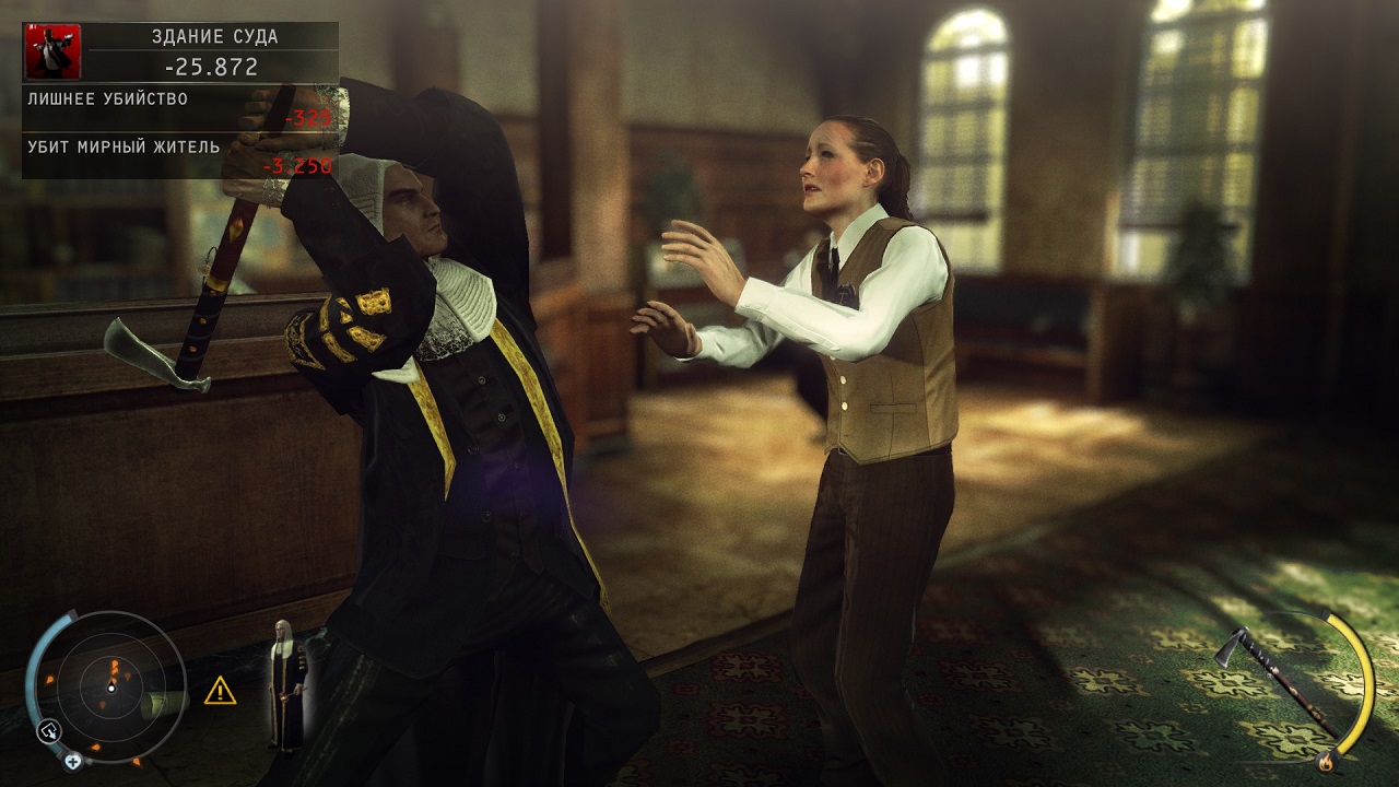 Самое время поговорить о тех факторах, которые собственно и отличают игру Hitman: Absolution, от своих предшественников. Итак, в рассматриваемой нами сегодня игре, присутствует уникальная функция, которую разработчики решили назвать "инстинкт". Суть этой функции полагает в том, что вам, в течении ограниченого количества времени, будет предоставлена возможность заглядывать через стены, дабы таким вот образом видеть врагов в толпе, предугадывать их путь и в конце концов - убивать их. Естественно, во время работы этой функции, вы сможете расстрелять огромное количество количество своих врагов, за счет метких и чрезвычайно быстрых выстрелов нашего главного героя.