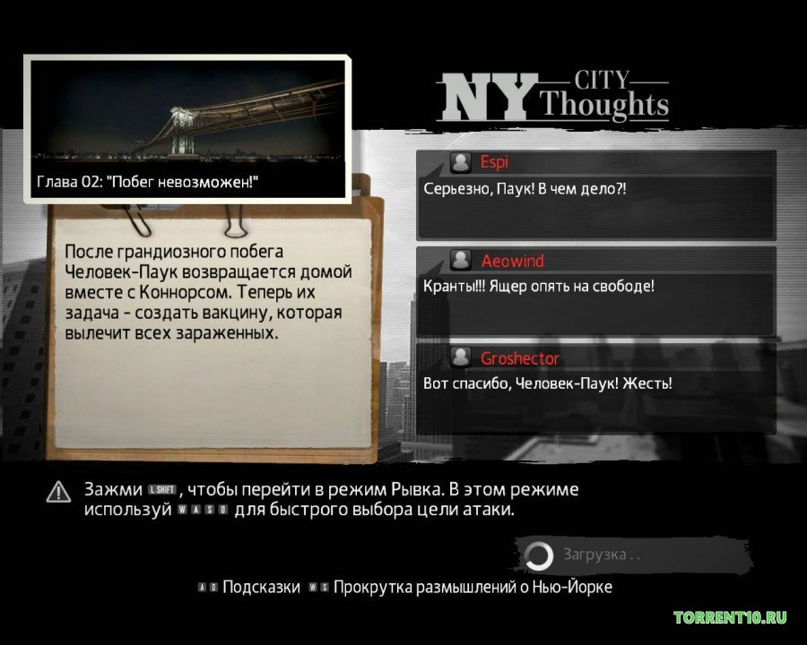 Действия игры повторяют сюжет одноименного фильма, но с некими новшествами и добавлениями. Над сюжетной линией данной адвенчуры трудился популярный сценарист Шеймас Кевин Фейхи. Игра начинается с того, что Питер Паркер и его подруга Гвендалина Стэйси проникают на закрытую и запрещенную территорию базы “Оскорпа”, где проводятся секретные эксперименты над ДНК человека. Там хотят вывести новых мутантов, создать тварей, которые могут уничтожать всех и вся вокруг. Они будут практически неубиваемые. Это некие роботы с искусственным интеллектом и управляемым мозгом. Научные руководители базы берут ДНК животных (например, носорога) и кровь человека. Затем они скрещивают это дело и получается некий мутант. Так можно делать со всеми животными, поэтому Человеку-пауку придется сразиться с огромным количеством тварей и мутантов, которые хотят захватить планету. Этот мощный вирус уже создал десятки персонажей, но к выпуску готовятся еще сотни. Поэтому необходимо поторопиться, иначе роботы начнут атаковать Нью-Йорк и тогда будет очень тяжело спасти всех граждан. Еще одной проблемой является то, что антидот находится у главного злодея всей саги. Поэтому героям необходимо добраться к нему и забрать лекарство, уничтожив антагониста. У Человека-паука есть куча девайсов и модных современных штучек, которыми он может воспользоваться. Одними из таких секретных приколов являются жуки-пауки. Они могут проникать в любые отверстия и передавать информацию об объектах. После того, как вы всех победите и отыщите антидот, спасете Нью-Йорк и всех его граждан, у вас появится возможность свободно передвигаться по городу, выполнять какие-то дополнительные миссии, расследовать дела, не касающиеся сюжетной линии. Скачайте торрент игры Новый Человек Паук и запустите ее как можно быстрее.