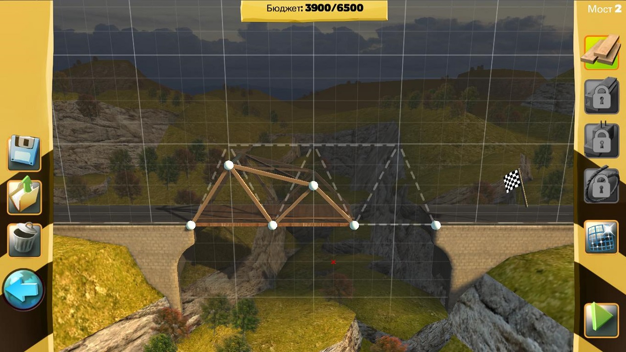 - Прочность моста. В игре вам начисляются дополнительные бонусы, если вы сможете возвести самый прочный мост, который выдержит целые потоки транспортных средств.