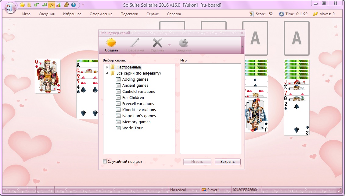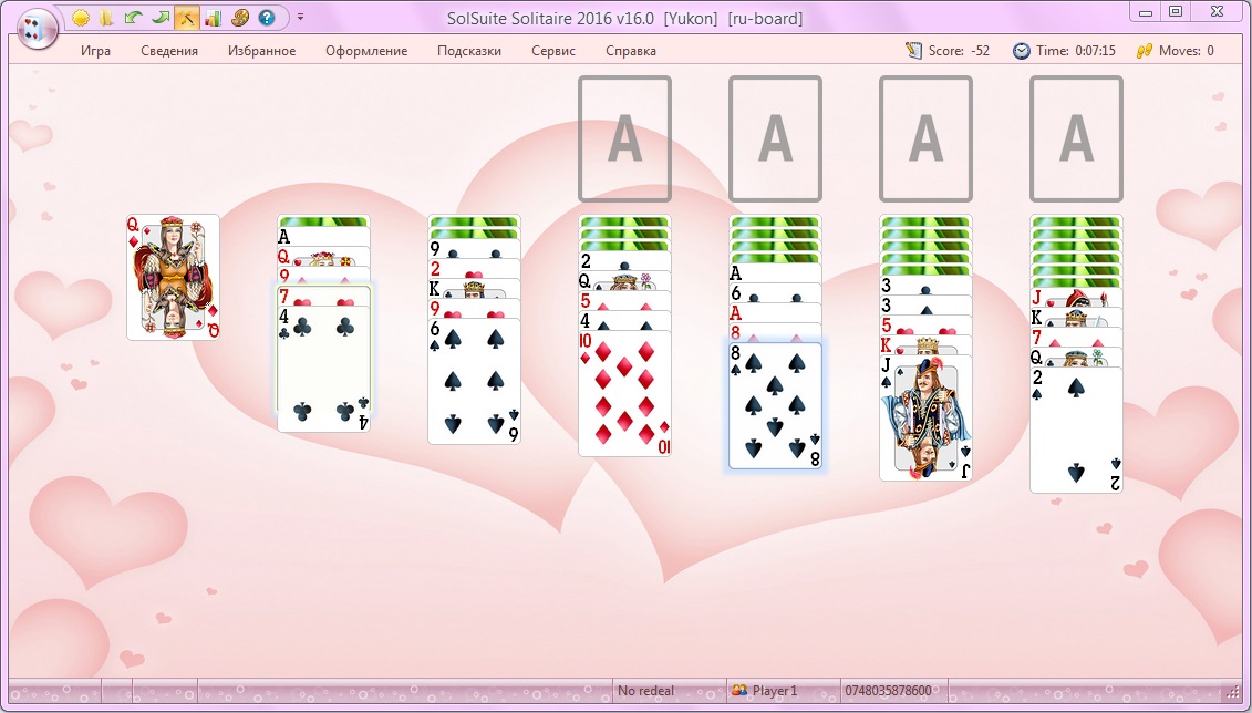 - Целых 648 штук разных видов пасьянса.