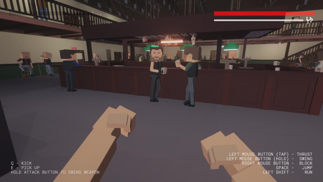 Основное действие игры происходит в баре, очень милое место, в котором куча людей, они веселятся, пьют, играют на бильярде, в общем, жизнь идет своим чередом. Но вот заходит наш главный герой и спустя пару минут начинается настоящая резня. Все как в классических вестернах, кто-то кого-то огрел, другой подхватил и вот уже вся толпа кувыркается и бьет друг другу лица. В этой всей суматохе мы должны наносить ответные удары обидчикам.