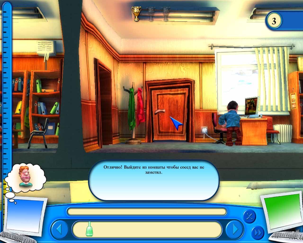 На экране будет индикатор бешенства соседа, чем он выше, тем больше дадут бонусов при активации следующей ловушки. Поэтому нужно стараться подстроить выполнение пакостей одну за другой. Эта же система работала и в предыдущих частях игры. Чтобы сделать это, нужно сначала собрать все предметы на уровне, а потом приступать к их использованию.