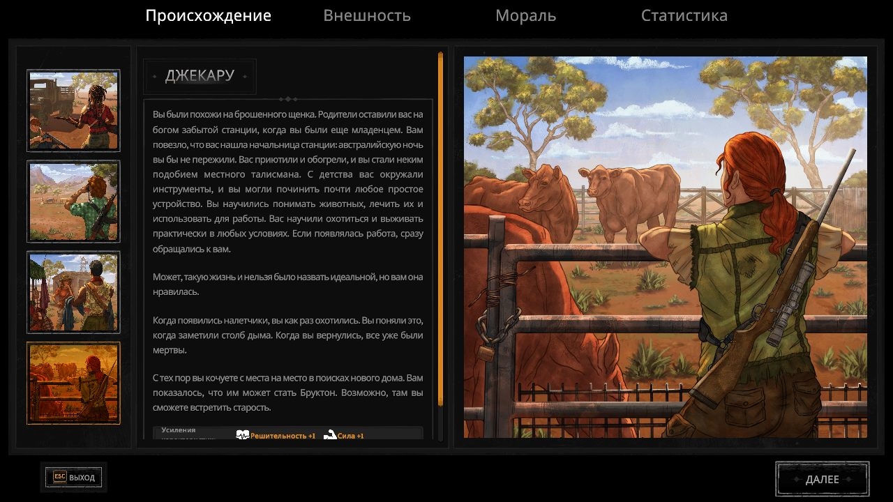 Это не самый благоприятный континент для выживания, ведь сама природа, постепенно захватывающая ныне бывшие жилые города, во многом является опасным испытанием для каждого путешественника. При этом наибольшую опасность для человечества представляет не вирус, не ходячие мертвецы и не катастрофы, а сам человек. Спустя несколько лет после глобальной катастрофы люди учатся жить заново. Правительство пало, государство так и не было восстановлено, а все выжившие были разделены на группы, где нашли свои ниши. Те, кто ни к кому не присоединился, становились их добычей, рабами, бесплатной рабочей силой. Выживают только самые сильные и способные убивать. Моральный компас показывает главному герою оптимальные для него действия и дает ему преимущества в разговоре. Оно может меняться в зависимости от решений, принятых по ходу сюжета.