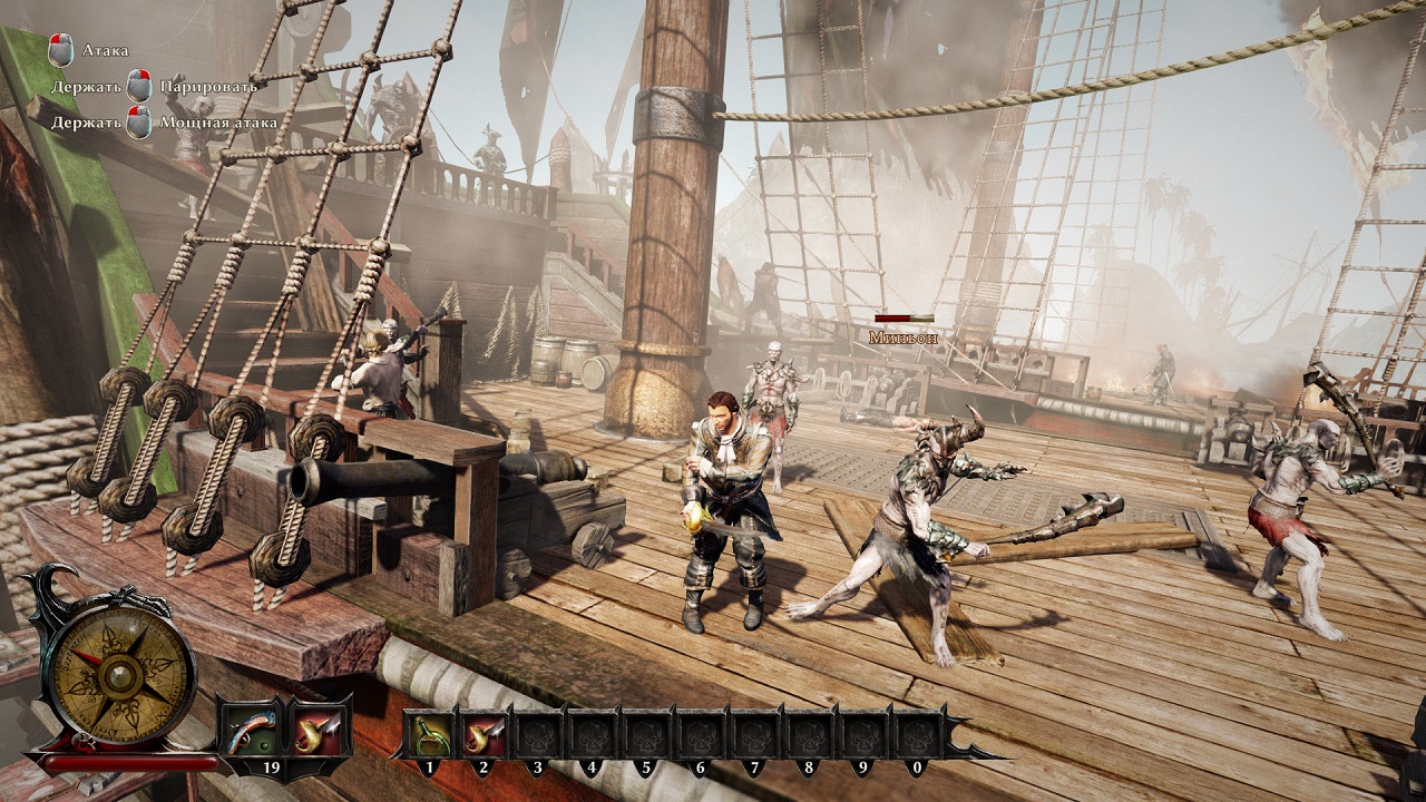 Лично мне кажется, что единственным минусом Risen 3: Titan Lords, является достаточно слабенькая боевая система, которая в некоторых, определенных случаях, может напомнить вам Gothic и Gothic 2. Слабенькая она в первую очередь потому, что базовых приемов здесь всего четыре, естественно есть возможность совершать комбо, но они не столь красочны, как того хотелось бы, при этом, блокировать удары врагов – невозможно, а избегать их ударов – достаточно тяжело и не каждый пользователь справиться с этим. Ну а вот что касается сюжета, то это именно то, что должно в обязательном порядке понравится каждого современному пользователю. Как и в прошлой части, вам придется сыграть за безымянного человека, но в нашем случае, это уже будет сын пирата Грегориуса "Стальной Бороды".