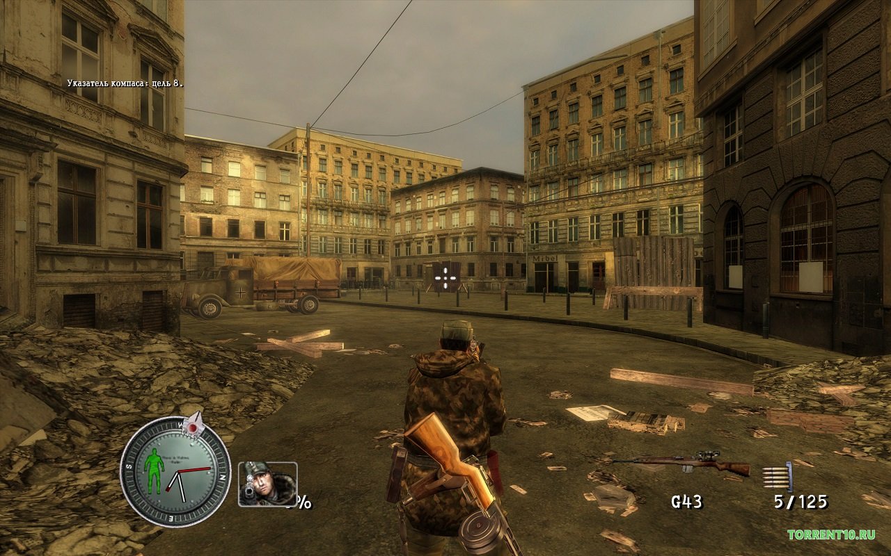 Содержание Sniper Elite не самое лучшее, участник армии США одетый в немецкое обмундирование, пытается противостоять плохим советским военным украсть ядерное оружие, скачайте через торрент если хотите участвовать в этом. Он совсем один и у него нет помощников, и сейчас последние военный дни 1945 года, по разгромленному Берлину бродят говорящие по-русски, и каждое слово имеет оттенок пафоса.