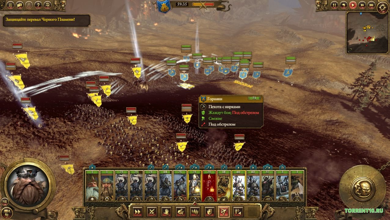 - В игре вам необходимо изматывать своего противника различными атаками гномьих автожиров, сметать его передние ряды при помощи виверн и добиться превосходства в воздухе благодаря ошеломительному количеству разнообразных летающих войск, которые ранее отсутствовали в играх Total War. Практически сразу вы поймете, какие тактические возможности это открывает.